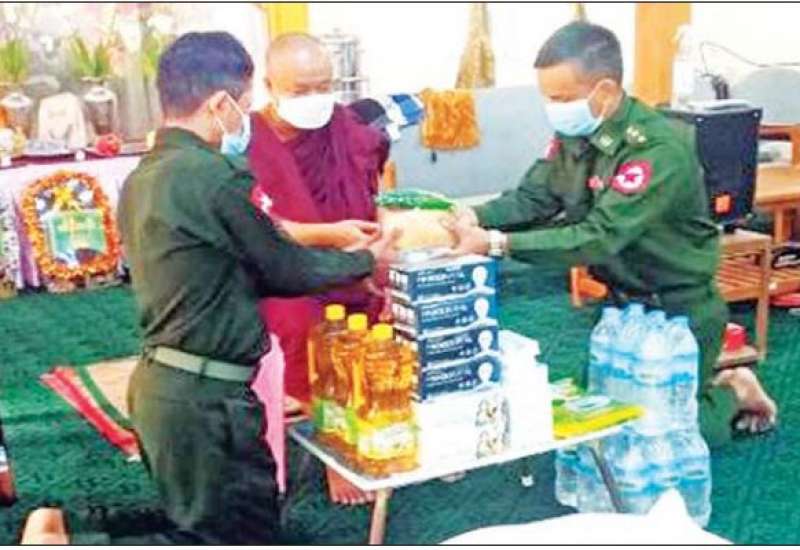 ကိုဗစ်-၁၉ ရောဂါ ကြိုတင်ကာကွယ်ရေးလုပ်ငန်းများ ဆောင်ရွက်နေသည့် ကာလအတွင်း ဆွမ်းကိစ္စရပ်များ အဆင်ပြေစေရန် ရည်ရွယ်၍ တပ်မတော်(ကြည်း၊ရေ၊ လေ) အရာရှိ၊ စစ်သည်၊ အရာထမ်း၊ အမှုထမ်းများနှင့် စေတနာရှင်အလှူရှင်များက မြို့နယ် အသီးသီးရှိ ဘုန်းတော်ကြီး ကျောင်းများ၊ သာသနာနွယ်ဝင် သီလရှင်ကျောင်းများနှင့် ဘာသာရေးကျောင်း များသို့ ဆွမ်းဆန်တော်၊ ဆီ၊ ဆား၊ ပဲ အမယ်(၄)မျိုးနှင့် လှူဖွယ် ပစ္စည်းများလှူဒါန်းခြင်း၊ နေ့ဆွမ်းများ ဆက်ကပ်လှူဒါန်းခြင်းနှင့် ကျန်းမာရေး စစ်ဆေးပေးခြင်းများကို ဆောင်ရွက်လျက် ရှိသည်။