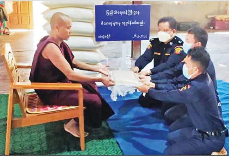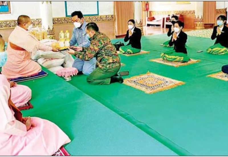 ပြည်ထဲရေးဝန်ကြီးဌာန၊ တပ်ဖွဲ့ဝင်ဝန်ထမ်း အရာထမ်း၊ အမှုထမ်းမိသားစုများက မြို့နယ်အသီးသီးရှိ ဘုန်းတော်ကြီးကျောင်းများသို့ ဆွမ်းဆန်တော်များ ဆက်ကပ်လှူဒါန်းခြင်းကို ဆောင်ရွက်လျက်ရှိသည်။