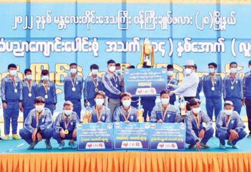 မန္တလေးတိုင်းဒေသကြီး ဝန်ကြီးချုပ်ဖလား အသက် ၁၄ နှစ်အောက် အခြေခံပညာ ကျောင်းပေါင်းစုံ ၂၈ မြို့နယ်ဘောလုံးပြိုင်ပွဲ ဗိုလ်လုပွဲနှင့် ဆုချီးမြှင့်ပွဲကို ယနေ့ နံနက်ပိုင်းက ချမ်းအေးသာစံမြို့နယ် ဗထူးအားကစားကွင်း၌ ကျင်းပရာ တိုင်းဒေသကြီး ဝန်ကြီးချုပ် ဦးမောင်ကို၊ တိုင်းဒေသကြီးဝန်ကြီးများ၊ ကျောင်းသား ကျောင်းသူများ၊ အားကစားပရိသတ်များ တက်ရောက်ကြပြီး အမရပူရမြို့နယ်အသင်းနှင့် သာစည်မြို့နယ်အသင်း ဗိုလ်လုပွဲ ယှဉ်ပြိုင်ကစားနေမှုကို ကြည့်ရှုအားပေးသည်။