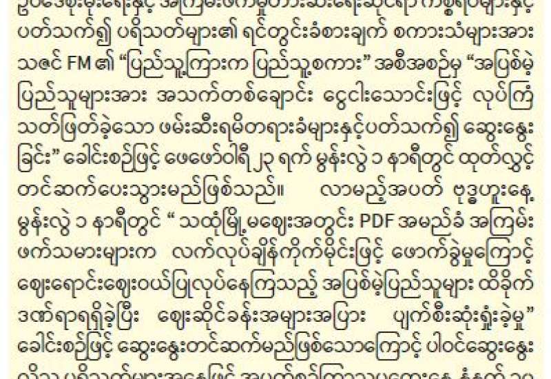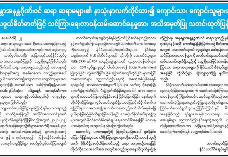 ပြည်တွင်းလက်နက်ကိုင်ပဋိပက္ခများ ချုပ်ငြိမ်းရေးနှင့် ရေရှည်တည်တံ့ခိုင်မြဲသည့် ထာဝရငြိမ်းချမ်းရေး တည်ဆောက်နိုင်ရေးတို့အတွက် အစိုးရနှင့် တပ်မတော်က မြန်မာ့ငြိမ်းချမ်းရေးဖြစ်စဉ် သမိုင်းတွင် တစ်ခါမှမရှိခဲ့ဖူးသည့် လိုက်လျောကမ်းလှမ်းချက် နှစ်ခုကို ဆောင်ရွက်ထားသည်။ လာမည့် ၂၀၂၃ ခုနှစ်သည် မြန်မာနိုင်ငံ လွတ်လပ်ရေးရသည့် (၇၅)နှစ်ပြည့်မြောက်သည့်နှစ် ဖြစ်သည်။ “နယ်ချဲ့တွေရဲ့ သွေးခွဲအုပ်ချုပ်မှုစနစ်ကြောင့် လွတ်လပ်ရေးနဲ့အတူ ဖြစ်ပွားခဲ့တဲ့ ပြည်တွင်းလက်နက်ကိုင် ပဋိပက္ခဟာ နိုင်ငံဖွံ့ဖြိုးတိုးတက်ရေးနဲ့ စည်းလုံးညီညွတ်မှုကို များစွာထိခိုက်ခဲ့ပါတယ်။ ကျွန်တော်တို့ရဲ့ အရင်းအမြစ်တွေ၊ ခွန်အားတွေ၊ စွမ်းအားတွေ ဒီပဋိပက္ခအပေါ်မှာ ဆုံးရှုံးခဲ့ပါတယ်။ ဒီလိုဆုံးရှုံးမှုတွေ ထပ်မဖြစ်ဖို့ ကျွန်တော်တို့အားလုံးမှာ တာဝန်ရှိပါတယ်” ဟူ၍ နိုင်ငံတော်စီမံအုပ်ချုပ်ရေးကောင်စီဥက္ကဋ္ဌ နိုင်ငံတော်ဝန်ကြီးချုပ် ဗိုလ်ချုပ်မှူးကြီး မင်းအောင်လှိုင်က (၇၅)နှစ်မြောက် စိန်ရတုပြည်ထောင်စုနေ့ ဂုဏ်ပြုအခမ်းအနား မိန့်ခွန်းတွင် ထည့်သွင်းပြောကြားခဲ့သည်ကိုလည်း သိရှိကြပြီး ဖြစ်သည်။