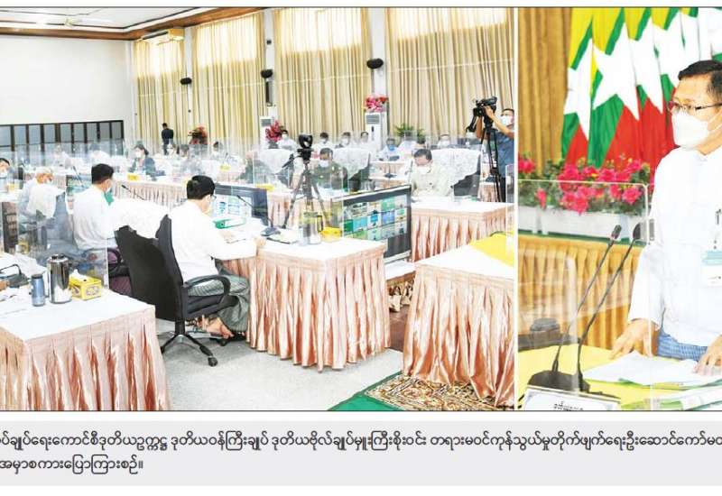 ဧရာဝတီတိုင်းဒေသကြီးအတွင်း ကိုဗစ်-၁၉ ရောဂါ ထိန်းချုပ်ရေးနှင့် အရေးပေါ်တုံ့ပြန်ရေး ကော်မတီ အစည်းအဝေးကို ယနေ့တွင် တိုင်းဒေသကြီး အစိုးရအဖွဲ့ရုံး အစည်းအဝေးခန်းမ၌ ပြုလုပ်ရာ တိုင်းဒေသကြီး ဝန်ကြီးချုပ် ဦးတင်မောင်ဝင်း၊ အနောက်တောင်တိုင်းစစ်ဌာနချုပ် ဒုတိယတိုင်းမှူး ဗိုလ်မှူးချုပ် အောင်ခင်ဇော် နှင့် တာဝန်ရှိသူများ၊ ဌာနဆိုင်ရာတာဝန်ရှိသူများ တက်ရောက်ကြသည်။