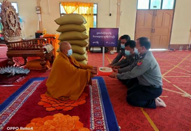 ကိုဗစ်-၁၉ ရောဂါ ကြိုတင်ကာကွယ်ရေးလုပ်ငန်းများ ဆောင်ရွက်နေသည့်ကာလအတွင်း ဆွမ်းကိစ္စရပ်များ အဆင်ပြေစေရန် ရည်ရွယ်၍ ပြည်ထဲရေးဝန်ကြီးဌာန၊ တပ်ဖွဲ့ဝင်/ ဝန်ထမ်း အရာထမ်း၊ အမှုထမ်းမိသားစုများက မြို့နယ်အသီးသီးရှိ ဘုန်းတော်ကြီးကျောင်းများသို့ ဆွမ်းဆန်တော်များ ဆက်ကပ်လှူဒါန်းခြင်းကို ဆောင်ရွက်လျက်ရှိသည်။