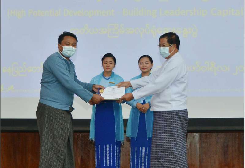ပြည်ထောင်စုရာထူးဝန်အဖွဲ့ကွပ်ကဲမှုအောက်ရှိ ဉီးစီးဌာနများနှင့်ဗဟိုဝန်ထမ်းတက္ကသိုလ်များမှ အရာထမ်း၊ အမှုထမ်းများဖြင့်ဆောင်ရွက်ခဲ့သော ဖွံ့ဖြိုးတိုးတက်မှု အလား အလာကောင်း တစ်ရပ်၏ ပြယုဂ်-ခေါင်းဆောင်မှုအရင်းအမြစ် တည်ဆောက်ခြင်းဆိုင်ရာ တတိယအကြိမ် အလုပ်ရုံဆွေးနွေးပွဲ ပိတ်ပွဲအခမ်းအနားကို ယနေ့ နံနက် ၄ နာရီက ပြည်ထောင်စုရာထူးဝန်အဖွဲ့ စုပေါင်းခန်းမ၌ ကိုဗစ်-၁၉ ရောဂါဆိုင်ရာ ထုတ်ပြန်ထားရှိသော စည်းကမ်းသတ်မှတ်ချက်များ နှင့်အညီ ကျင်းပသည်။