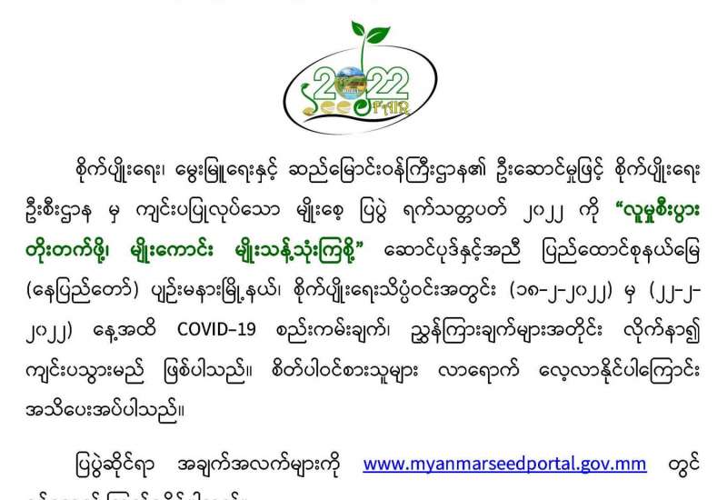 စိုက်ပျိုးရေး၊မွေးမြူရေးနှင့်ဆည်မြောင်းဝန်ကြီးဌာန “မျိုးစေ့ပြပွဲရက်သတ္တပတ် ၂၀၂၂” Seed Fair Week 2022