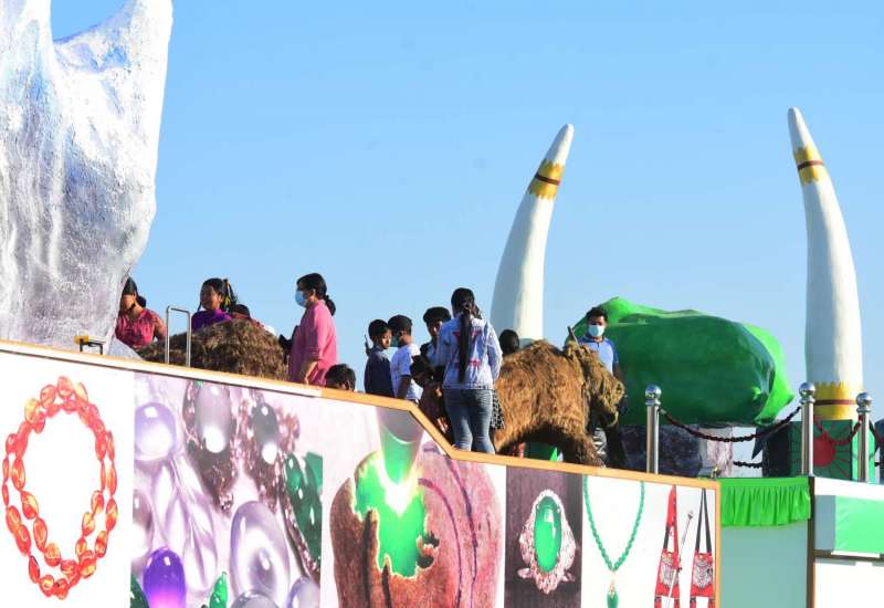 (၇၅) နှစ်မြောက် စိန်ရတုပြည်ထောင်စုနေ့ ဂုဏ်ပြုအခမ်းအနားတွင် ပါဝင်ပြသခဲ့ကြသည့် ပြည်ထောင်စုနယ်မြေနှင့် တိုင်းဒေသကြီး၊ ပြည်နယ်အသီးသီးမှ ဂုဏ်ပြုယာဉ်များအား နေပြည်တော် ဥပ္ပါတသန္တိစေတီတော်ရှေ့ တပေါင်းကွင်း၌ ခင်းကျင်းပြသလျက်ရှိရာ ယနေ့ ဒုတိယနေ့တွင် ပြည်သူများ တစ်ခဲနက် လာရောက်လေ့လာ ကြည့်ရှုကြသည်။