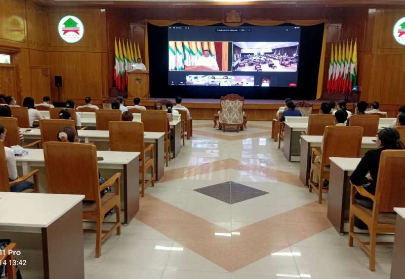ဖွံ့ဖြိုးတိုးတက်မှု အလားအလာကောင်းတစ်ရပ်၏ ပြယုဂ်-ခေါင်းဆောင်မှုအရင်းအမြစ်တည်ဆောက်ခြင်းဆိုင်ရာ တတိယအကြိမ်အလုပ်ရုံဆွေးနွေးပွဲ ဖွင့်ပွဲ အခမ်းအနားကို ယနေ့နံနက် ၉ နာရီက ကိုဗစ်-၁၉ ရောဂါဆိုင်ရာ ထုတ်ပြန်ထားရှိသော စည်းကမ်းသတ်မှတ်ချက်များနှင့်အညီ ပြည်ထောင်စုရာ ထူး ဝန်အဖွဲ့၊ စုပေါင်းခန်းမတွင် ကျင်းပသည်။