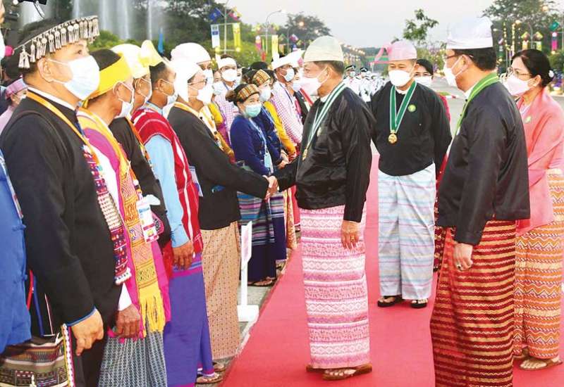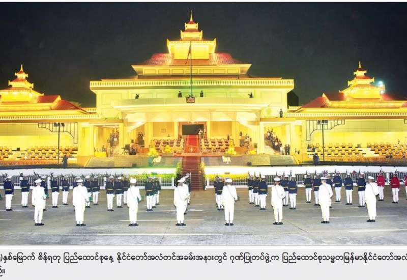 ပြည်ထောင်စုသမ္မတမြန်မာနိုင်ငံတော် နိုင်ငံတော်စီမံအုပ်ချုပ်ရေးကောင်စီဥက္ကဋ္ဌ နိုင်ငံတော် ဝန်ကြီးချုပ် ဗိုလ်ချုပ်မှူးကြီး မဟာသရေစည်သူ မင်းအောင်လှိုင်နှင့်ဇနီး ဒေါ်ကြူကြူလှတို့က တည်ခင်းဧည့်ခံသည့် ၂၀၂၂ ခုနှစ် (၇၅) နှစ်မြောက် စိန်ရတုပြည်ထောင်စုနေ့ အထိမ်းအမှတ် ဂုဏ်ပြုညစာစားပွဲ အခမ်းအနားကို ယနေ့ညပိုင်းတွင် နေပြည်တော်ရှိ မြို့တော်ခန်းမ ဥပစာရင်ပြင်၌ ကျင်းပသည်။