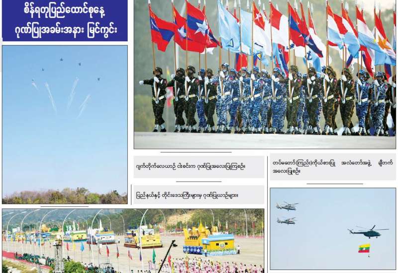 ၂၀၂၂ ခုနှစ် (၇၅)နှစ်မြောက် စိန်ရတုပြည်ထောင်စုနေ့ ဂုဏ်ပြုအခမ်းအနားကို ယနေ့နံနက်ပိုင်းတွင် နေပြည်တော်ရှိ ဗိုလ်ရှုခံရင်ပြင်၌ကျင်းပရာ နိုင်ငံတော် စီမံအုပ်ချုပ်ရေးကောင်စီဥက္ကဋ္ဌ နိုင်ငံတော်ဝန်ကြီးချုပ် ဗိုလ်ချုပ်မှူးကြီး မဟာသရေစည်သူ မင်းအောင်လှိုင် တက်ရောက် မိန့်ခွန်းပြောကြားပြီး ဂုဏ်ပြုစစ်ကြောင်းများ၏ အလေးပြုခြင်းကို ခံယူသည်။