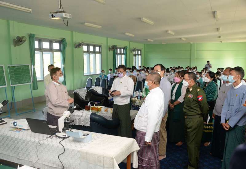 ပညာရေးဝန်ကြီးဌာန ပြည်ထောင်စုဝန်ကြီး ဒေါက်တာညွန့်ဖေသည် ဒုတိယဝန်ကြီးများဖြစ်ကြသည့် ဒေါက်တာဇော်မြင့်၊ ဦးဇော်ဝင်းနှင့်အတူ ယနေ့နံနက် ၉ နာရီတွင် နေပြည်တော် ဇေယျာသီရိမြို့နယ်ရှိ အမှတ်(၁)၊ အခြေခံပညာအထက်တန်းကျောင်းသို့ သွားရောက်၍ ပညာရေးဝန်ကြီးဌာနက ဖြည့်ဆည်းပေးသည့် သိပ္ပံလက်တွေ့ခန်းသုံး သင်ထောက်ကူပစ္စည်းများ တပ်ဆင်သုံးစွဲမှုများကို ကြည့်ရှုစစ်ဆေးသည်။