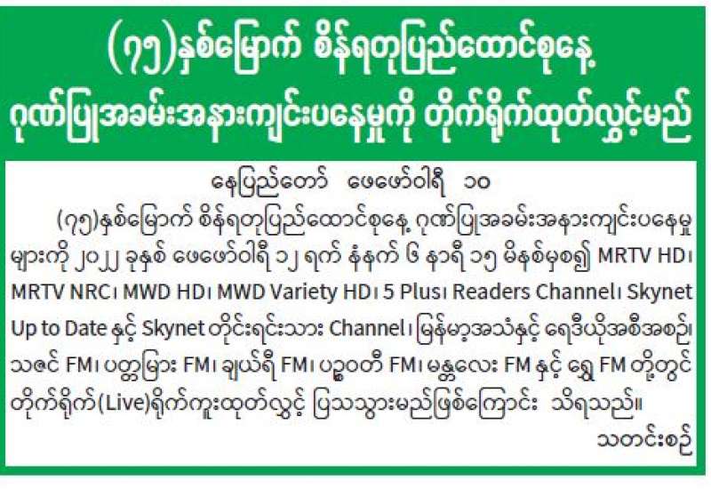 (၇၅)နှစ်မြောက် စိန်ရတုပြည်ထောင်စုနေ့ကို ဂုဏ်ပြုကြိုဆိုသောအားဖြင့် စက်မှုနှင့် အသက်မွေးပညာ ရွေ့လျားသင်တန်း ဖွင့်ပွဲအခမ်းအနားကို ယနေ့ မွန်းလွဲပိုင်းက နေပြည်တော်၊ ဒက္ခိဏသီရိစက်မှုဇုန်ရှိ New Power စက်ရုံ၌ ကျင်းပသည်။