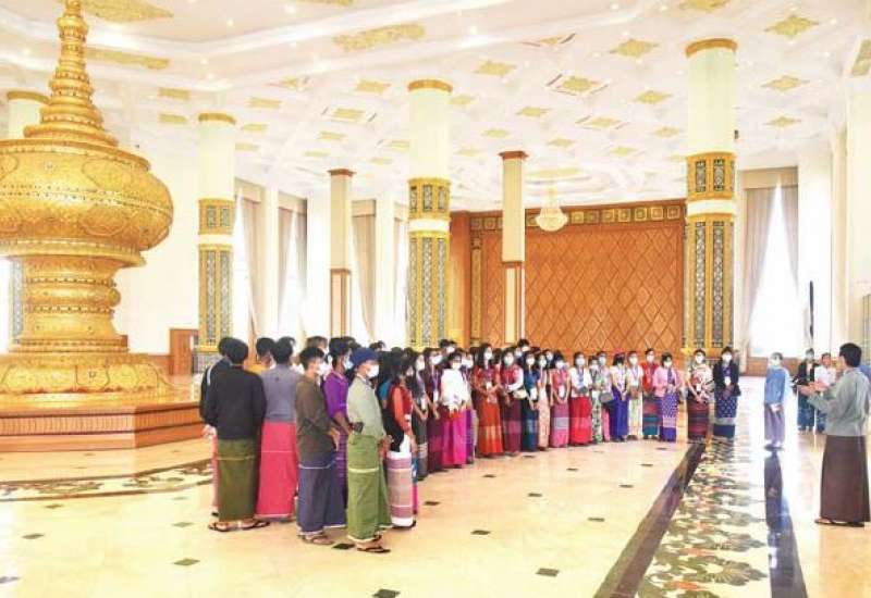 နေပြည်တော်၌ ကျင်းပမည့် (၇၅)နှစ်မြောက် စိန်ရတုပြည်ထောင်စုနေ့ ဂုဏ်ပြုအခမ်းအနားတွင် ပါဝင်ဆင်နွှဲမည့် မွန်ပြည်နယ်မှ တိုင်းရင်းသား စာပေနှင့် ယဉ်ကျေးမှု အဖွဲ့ဝင်များသည် ယနေ့နံနက်ပိုင်းက နေပြည်တော်ရှိ လွှတ်တော်အဆောက်အအုံသို့ သွားရောက်လေ့လာ ကြည့်ရှုကြသည်။