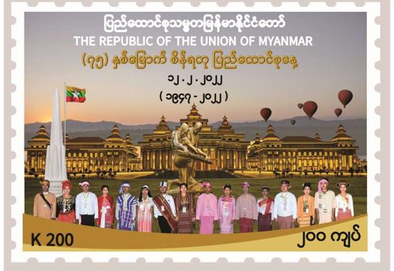 ပို့ဆောင်ရေးနှင့်ဆက်သွယ်ရေးဝန်ကြီးဌာန၊ မြန်မာ့စာတိုက်လုပ်ငန်းမှ (၇၅)နှစ်မြောက် စိန်ရတုပြည်ထောင်စုနေ့အထိမ်းအမှတ် အထူးထုတ် စာပို့တံဆိပ် ခေါင်းသစ် (၂၀၀/- ကျပ်တန်) (၃)မျိုးအား ၂၀၂၂ ခုနှစ်၊ ဖေဖော်ဝါရီ (၁၂)ရက်၊ မြန်မာသက္ကရာဇ် ၁၃၈၃ ခုနှစ်၊ တပို့တွဲလဆန်း (၁၂)ရက် (စနေနေ့)၊ နံနက် ၉ နာရီမှစတင်၍ နေပြည်တော် ဗဟိုစာတိုက်ကြီး၊ ရန်ကုန်စာတိုက်ကြီး၊ မန္တလေးစာတိုက်ကြီးတို့နှင့် တိုင်းဒေသကြီး/ ပြည်နယ်များရှိ စာတိုက်ကြီးများတွင် ရောင်းချပေးသွားမည် ဖြစ်သည်။