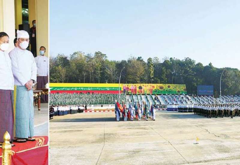နိုင်ငံတော်စီမံအုပ်ချုပ်ရေးကောင်စီ ဒုတိယဥက္ကဋ္ဌ ဒုတိယဝန်ကြီးချုပ် ဒုတိယဗိုလ်ချုပ်မှူးကြီး စိုးဝင်းသည် ယနေ့နံနက်ပိုင်းတွင် နေပြည်တော် ဗိုလ်ရှုခံရင်ပြင်၌ ကျင်းပပြုလုပ်သည့် ၂၀၂၂ ခုနှစ် (၇၅)နှစ်မြောက် စိန်ရတုပြည်ထောင်စုနေ့ ဂုဏ်ပြုအခမ်းအနား အောင်မြင်စွာ ကျင်းပနိုင် ရေး ဝတ်စုံပြည့်အစမ်းလေ့ကျင့်နေမှုများကို ကြည့်ရှုစစ်ဆေးသည်။