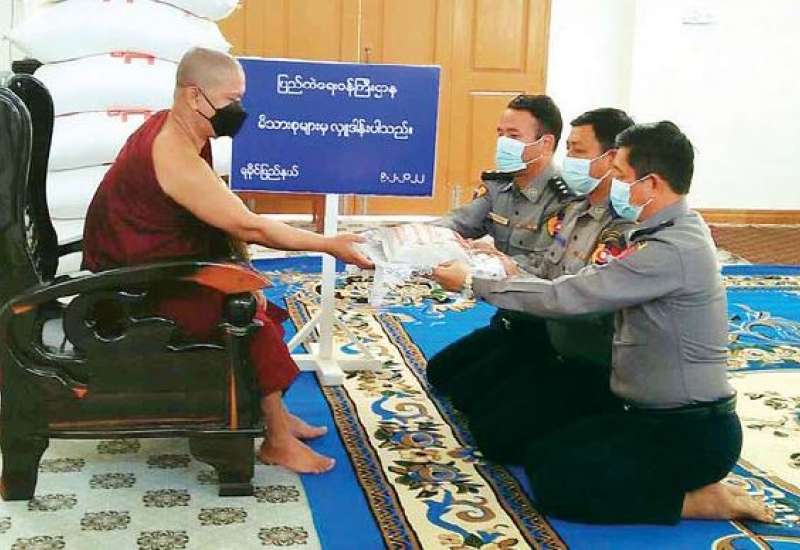 ပြည်ထဲရေးဝန်ကြီးဌာန တပ်ဖွဲ့ ဝင်/ဝန်ထမ်း အရာထမ်း၊ အမှုထမ်းမိသားစုများက မြို့နယ်အသီးသီးရှိ ဘုန်းတော်ကြီးကျောင်းများသို့ ဆွမ်းဆန်တော်များ ဆက်ကပ်လှူဒါန်းလျက်ရှိသည်။