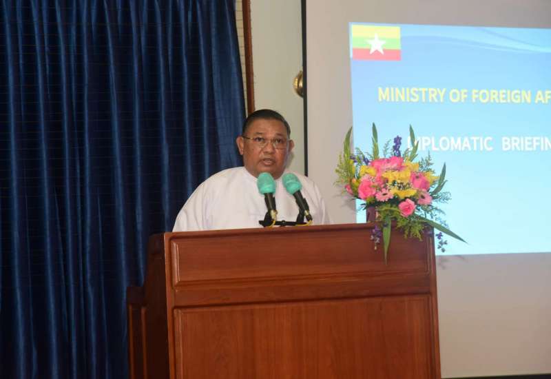 နိုင်ငံခြားရေးဝန်ကြီးဌာန၊ ပြည်ထောင်စုဝန်ကြီး ဦးဝဏ္ဏမောင်လွင်သည် မြန်မာနိုင်ငံ၏ လက်ရှိပြည်တွင်း နိုင်ငံရေးဖြစ်ပေါ် တိုးတက်မှု အခြေအနေများနှင့်ပတ်သက်၍ ရန်ကုန်မြို့ရှိ သံတမန်များနှင့် ကုလသမဂ္ဂ ဌာနေကိုယ်စားလှယ်တို့အား ရှင်းလင်းပြောကြားမှု အစီအစဉ်ကို နိုင်ငံခြားရေးဝန်ကြီးဌာန(ရန်ကုန်)၊ ဝန်ဇင်