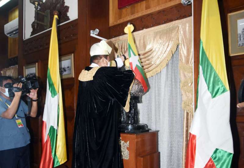 ပြည်ထောင်စု တရားလွှတ်တော်ချုပ်၊ ရုံးခန်းအမှတ် (၄) တွင် သတ္တမအကြိမ် ဗီဒီယိုကွန်ဖရင့်စနစ်ဖြင့် တရားလွှတ်တော်ရှေ့နေ အသိအမှတ်ပြုလက်မှတ် ပေးအပ်သည့် အခမ်းအနားကို ယနေ့နံနက် ၈ နာရီတွင် ကျင်းပသည်။