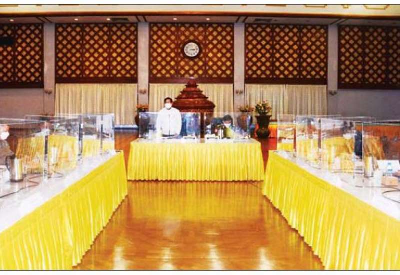 ရန်ကုန်တိုင်းဒေသကြီးအတွင်း ဆောင်ရွက်လျက်ရှိသည့် ကိုဗစ်-၁၉ ရောဂါ ထိန်းချုပ်ရေးနှင့် အရေးပေါ် တုံ့ပြန်ရေးကော်မတီလုပ်ငန်း ညှိနှိုင်းအစည်းအဝေးကို ယနေ့တွင် တိုင်းဒေသကြီးအစိုးရအဖွဲ့ရုံး မင်္ဂလာခန်းမ၌ ပြုလုပ်ရာ ရန်ကုန်တိုင်းဒေသကြီး ဝန်ကြီးချုပ် ဦးစိုးသိန်း၊ ရန်ကုန်တိုင်းစစ်ဌာနချုပ် တိုင်းမှူး ဗိုလ်ချုပ် ညွန့်ဝင်းဆွေနှင့် ဌာနဆိုင်ရာတာဝန်ရှိသူများ၊ ကျန်းမာရေးဝန်ထမ်းများ တက်ရောက်ကြသည်။