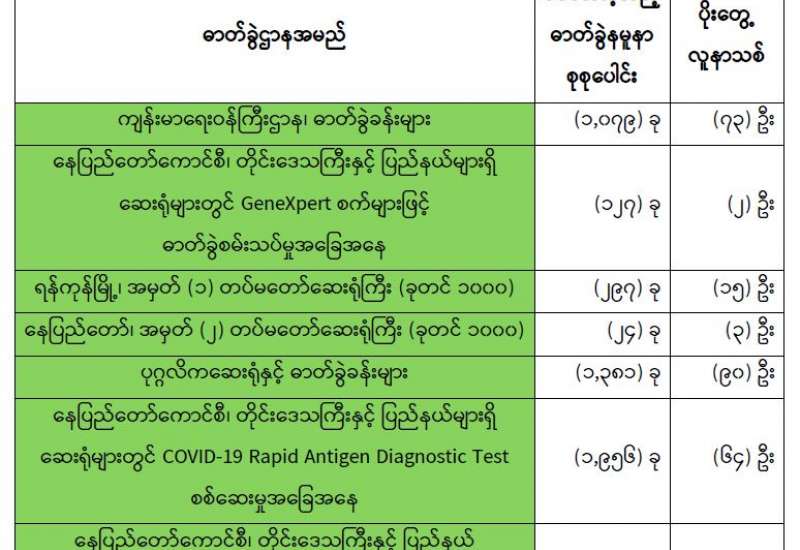 ကျန်းမာရေးဝန်ကြီးဌာနအနေဖြင့် နိုင်ငံအတွင်း ကူးစက်ဖြစ်ပွားနေသော COVID-19 ရောဂါ ကာကွယ်၊ ကုသ၊ ထိန်းချုပ်ရေးလုပ်ငန်းများကို အရှိန်အဟုန်မြှင့် ဆောင်ရွက်လျက်ရှိပါသည်။