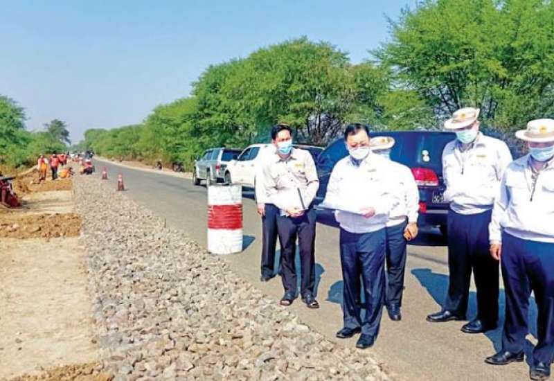 ဆောက်လုပ်ရေးဝန်ကြီးဌာန ဒုတိယဝန်ကြီး ဦးဝင်းဖေသည် ဌာနဆိုင်ရာ တာဝန်ရှိသူများနှင့်အတူ ဖေဖော်ဝါရီ(၂)ရက် နံနက်ပိုင်းက နေပြည်တော်-တောင်ညို-မြို့သစ်-မကွေး-ကန်ပြား လမ်းတစ်လျှောက်နှင့် မိုင် (၁၄/၃-၁၄/၄) တွင် မြေထိန်းနံရံ ဆောင်ရွက်နေမှု၊ မိုင် (၂၂/၆)၊ မိုင် (၃၁/၀)တို့တွင် ကတ္တရာထပ်ပိုးလွှာ ခင်းခြင်းလုပ်ငန်း ဆောင်ရွက်နေမှု၊ မိုင် (၅၀ /၄) တွင် (၂၄)ပေ အကျယ် ကတ္တရာလမ်းချဲ့၍ ထပ်ပိုးလွှာခင်းခြင်းလုပ်ငန်း ဆောင်ရွက်နေမှုတို့ကို ကြည့်ရှုစစ်ဆေးပြီး လိုအပ်သည်များ မှာကြားသည်။