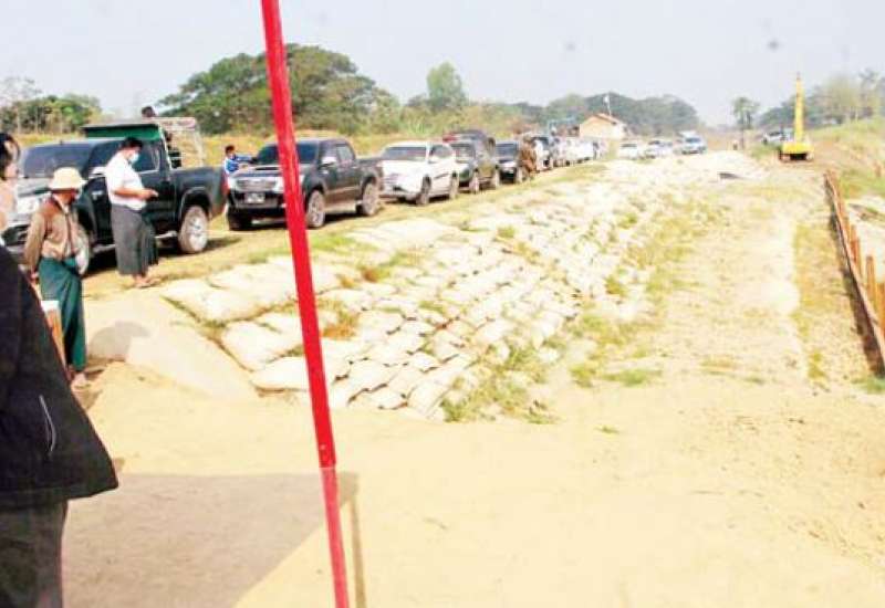 ပဲခူးတိုင်းဒေသကြီး ဝန်ကြီးချုပ် ဦးမျိုးဆွေဝင်းသည် တိုင်းဒေသကြီးဝန်ကြီးများ၊ တိုင်းဒေသကြီး ဥပဒေချုပ်၊ တာဝန်ရှိသူများနှင့်အတူ ဖေဖော်ဝါရီ ၃ ရက် နံနက်ပိုင်းက သာယာဝတီမြို့နယ် အလယ်ကုန်း-ဖိုးခေါင်-စံရွေးလမ်းပိုင်း၌ (၁)မိုင်(၅) ဖာလုံ၊ (၁၂)ပေအကျယ် ကတ္တရာခင်းခြင်း လုပ်ငန်း ဆောင်ရွက်နေမှုကိုကြည့်ရှုစစ်ဆေးသည်။
