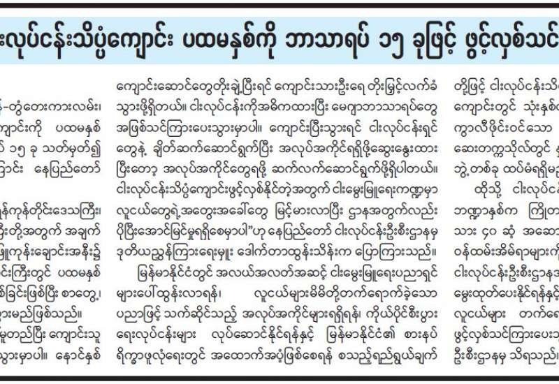 ရန်ကုန်ငါးဖမ်းလုပ်ငန်းသိပ္ပံကျောင်း ပထမနှစ်ကို ဘာသာရပ် ၁၅ ခုဖြင့် ဖွင့်လှစ်သင်ကြားမည်