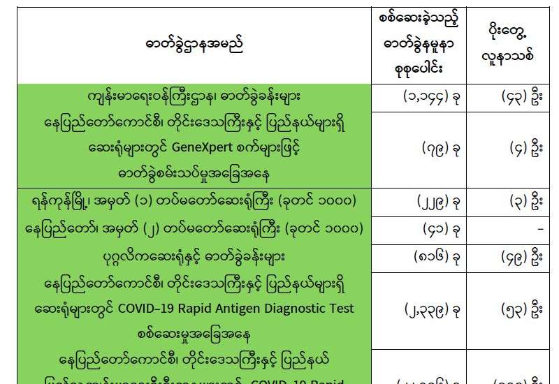 ကျန်းမာရေးဝန်ကြီးဌာနအနေဖြင့် နိုင်ငံအတွင်း ကူးစက်ဖြစ်ပွားနေသော COVID-19 ရောဂါ ကာကွယ်၊ ကုသ၊ ထိန်းချုပ်ရေးလုပ်ငန်းများကို အရှိန်အဟုန်မြှင့် ဆောင်ရွက်လျက်ရှိပါသည်။