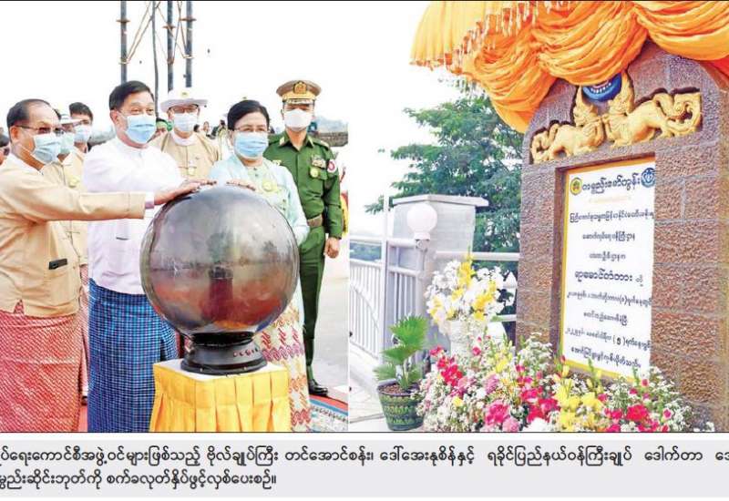 (၇၅)နှစ်မြောက်စိန်ရတုပြည်ထောင်စုနေ့ အထိမ်းအမှတ် ရခိုင်ပြည်နယ် မင်းပြားမြို့ နယ်အတွင်း ရန်ကုန်-စစ်တွေသွားကားလမ်းပေါ်တွင် အသစ်တည်ဆောက်ပြီးသည့် ရာမောင်တံတား ဖွင့်ပွဲကို ယနေ့နံနက်ပိုင်းတွင် ကျင်းပပြုလုပ်ရာ အခမ်းအနားသို့ နိုင်ငံတော်စီမံအုပ်ချုပ် ရေးကောင်စီဝင်များဖြစ်ကြသည့် ဗိုလ်ချုပ်ကြီး တင်အောင်စန်း၊ မန်းငြိမ်းမောင်၊ ဒေါ်အေးနုစိန်၊ ဦးမောင်းဟာ၊ ဆောက်လုပ်ရေးဝန်ကြီးဌာန ပြည်ထောင်စုဝန်ကြီး ဦးရွှေလေး၊ ရခိုင်ပြည်နယ်ဝန်ကြီးချုပ် ဒေါက်တာ အောင်ကျော်မင်း၊ အနောက်ပိုင်းတိုင်း စစ်ဌာနချုပ် တိုင်းမှူး ဗိုလ်ချုပ် ထင်လတ်ဦး၊ ပြည်နယ်ဝန်ကြီးများ၊ ဌာနဆိုင်ရာ တာဝန်ရှိသူများနှင့် ဒေသခံပြည်သူများ တက်ရောက်ကြသည်။