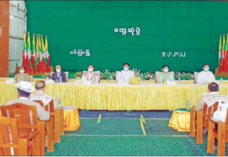နိုင်ငံတော်စီမံအုပ်ချုပ်ရေးကောင်စီ အဖွဲ့ဝင်များဖြစ်ကြသည့် ဗိုလ်ချုပ်ကြီး တင်အောင်စန်း၊ မန်းငြိမ်းမောင်၊ ဒေါ်အေးနုစိန်၊ ဦးမောင်းဟာတို့သည် ဆောက်လုပ်ရေး ဝန်ကြီးဌာန ပြည်ထောင်စုဝန်ကြီး ဦးရွှေလေး၊ ရခိုင်ပြည်နယ်ဝန်ကြီးချုပ် ဒေါက်တာ အောင်ကျော်မင်း၊ အနောက်ပိုင်းတိုင်းစစ်ဌာနချုပ် တိုင်းမှူး ဗိုလ်ချုပ် ထင်လတ်ဦး၊ ပြည်နယ် ဝန်ကြီးများနှင့်အတူ ယနေ့ မွန်းလွဲပိုင်းတွင် ဌာနဆိုင်ရာများ၊ မြို့မိ/မြို့ဖများ၊ ဒေသခံပြည်သူများအား ရာမောင်ခန်းမ၌ တွေ့ဆုံ၍ ဒေသဖွံ့ဖြိုးရေး၊ လူမှုရေး၊ စီးပွား ရေး၊ ကျန်းမာရေး၊ လမ်းပန်းဆက်သွယ်ရေး ဆိုင်ရာများနှင့်ပတ်သက်၍ ဆွေးနွေးသည်။