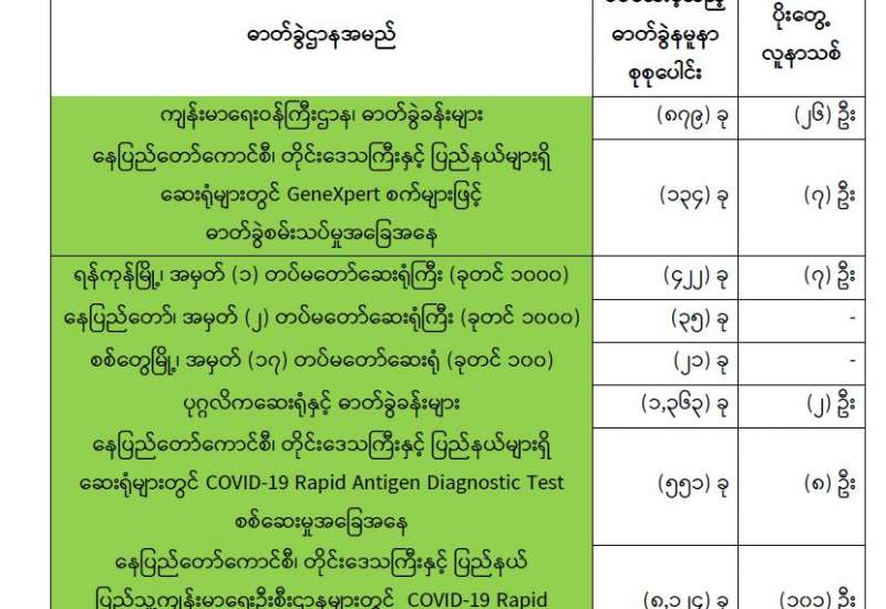 ကျန်းမာရေးဝန်ကြီးဌာနအနေဖြင့် နိုင်ငံအတွင်း ကူးစက်ဖြစ်ပွားနေသော COVID-19 ရောဂါ ကာကွယ်၊ ကုသ၊ ထိန်းချုပ်ရေးလုပ်ငန်းများကို အရှိန်အဟုန်မြှင့် ဆောင်ရွက် လျက်ရှိရာ ရောဂါ ထိန်းချုပ်ရေးလုပ်ငန်းများ အောင်မြင်နိုင်ရေးအတွက် ပြည်သူလူထုအနေဖြင့် ကျန်းမာရေးဝန်ကြီး ဌာနမှထုတ်ပြန်ထားသော COVID-19 ရောဂါကာကွယ် ထိန်းချုပ်ရေးဆိုင်ရာစည်းကမ်းများကို စနစ်တကျ လိုက်နာဆောင်ရွက်ရန်လိုအပ်ပြီး COVID-19 ကာကွယ်ဆေးထိုးနှံမှုခံယူခြင်းအား အထူး ဂရုပြု ပူးပေါင်းဆောင် ရွက်ကြရန် လိုအပ်ပါသည်။