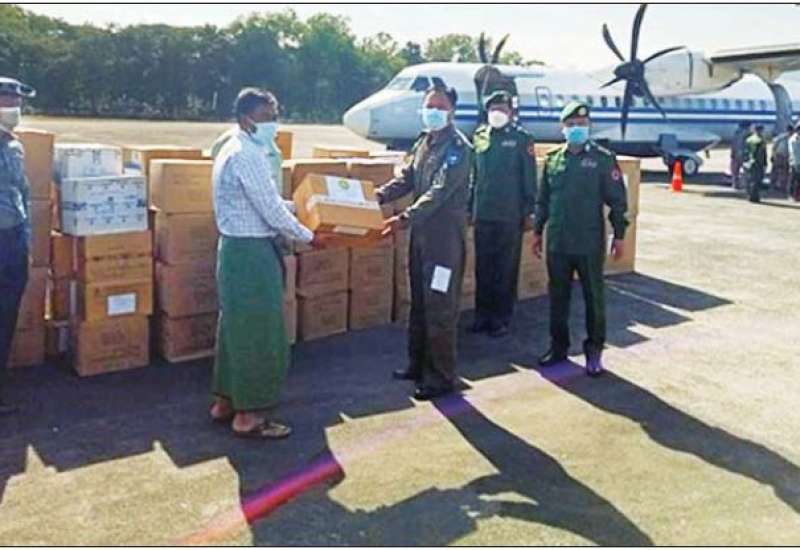 ကိုဗစ်-၁၉ ရောဂါ ဓာတ်ခွဲအတည်ပြုပိုးတွေ့ လူနာများနှင့် သီးသန့်စောင့် ကြည့်ရမည့်သူများအား တပ်မတော်ဆေးရုံများ၊ ပြည်သူ့ဆေးရုံများ၊ ကျန်းမာရေး ဌာနများနှင့် ကိုဗစ်စင်တာများတွင် ကျန်းမာရေးစောင့်ရှောက်ပေးခြင်းနှင့် ပြည်နယ်နှင့်တိုင်းဒေသကြီးအသီးသီး၌ ကိုဗစ်-၁၉ ရောဂါ ကာကွယ်ဆေးထိုးခြင်း လုပ်ငန်းများကို တပ်မတော်သားဆရာဝန်များ၊ ကျန်းမာရေးဝန်ထမ်းများ၊ လူမှုရေးအသင်း အဖွဲ့များပူးပေါင်း၍ အင်တိုက်အားတိုက်ဆောင်ရွက်ပေးလျက်ရှိရာ ၎င်းလုပ်ငန်း များတွင် အထောက်အကူဖြစ်စေရန်အတွက် ကာကွယ်ဆေးများကို တိုင်းဒေသကြီးနှင့်ပြည်နယ် အသီးသီးသို့ သတ်မှတ်အအေးလမ်းကြောင်း စံချိန်စံညွှန်းများအတိုင်း တပ်မတော်(လေ)မှ လေယာဉ်များ၊ Cold Chain Delivery Logistics မော်တော်ယာဉ်ကြီးများဖြင့် ပို့ဆောင်ဖြန့်ဖြူးပေးလျက် ရှိသည်။