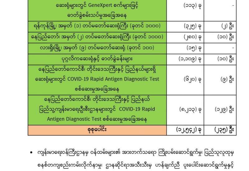 ကျန်းမာရေးဝန်ကြီးဌာနအနေဖြင့် နိုင်ငံအတွင်း ကူးစက်ဖြစ်ပွားနေသော COVID-19 ရောဂါ ကာကွယ်၊ ကုသ၊ ထိန်းချုပ်ရေးလုပ်ငန်းများကို အရှိန်အဟုန်မြှင့် ဆောင်ရွက်လျက်ရှိပါသည်။