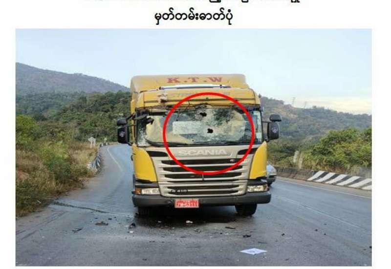 ကရင်ပြည်နယ်၊ မြဝတီမြို့မှ မန္တလေးမြို့သို့ ပို့ဆောင်ရန် Argon Gas အရည်များ တင်ဆောင်လာသည့် မော်တော်ယာဉ်အား ယနေ့ညနေပိုင်းတွင် PDF အမည်ခံအကြမ်းဖက်သမားများက လက်နက်ငယ်များဖြင့် အကြောင်းမဲ့ ပစ်ခတ်ခဲ့ကြောင်း သိရှိရသည်။