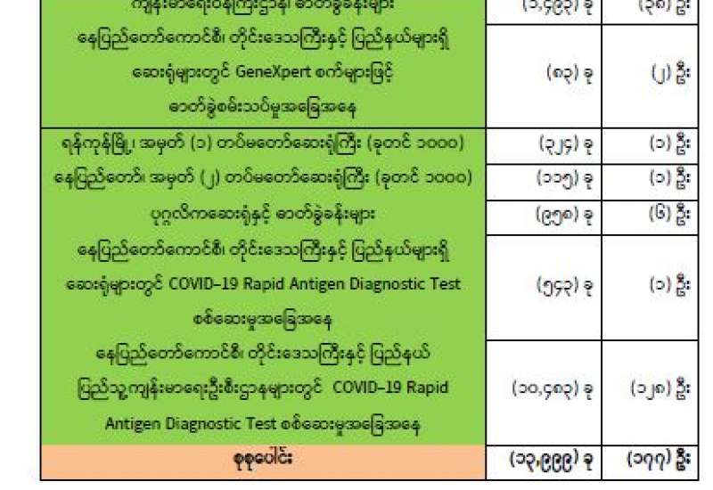 ကျန်းမာရေးဝန်ကြီးဌာနအနေဖြင့် နိုင်ငံအတွင်း ကူးစက်ဖြစ်ပွားနေသော COVID-19 ရောဂါ ကာကွယ်၊ ကုသ၊ ထိန်းချုပ်ရေးလုပ်ငန်းများကို အရှိန်အဟုန်မြှင့် ဆောင်ရွက်လျက်ရှိပါသည်။