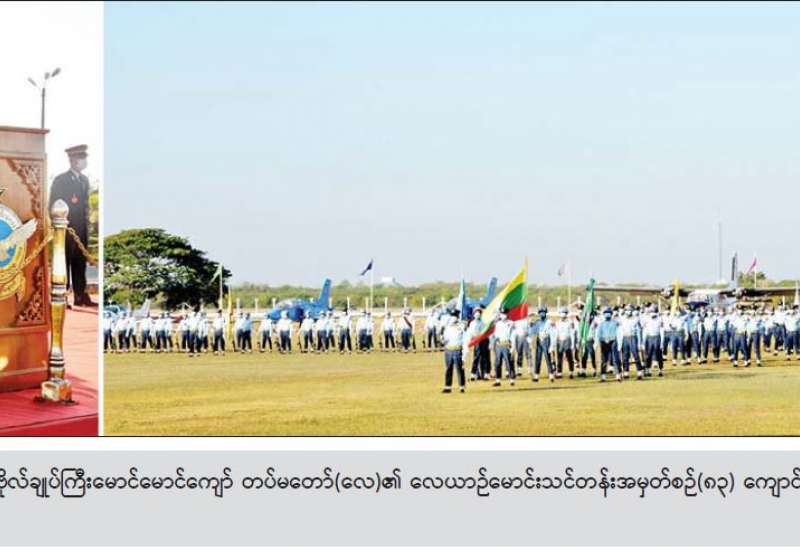 တပ်မတော်(လေ)၏ လေယာဉ်မောင်းသင်တန်း အမှတ်စဉ်(၈၃) ကျောင်းဆင်းတောင်ပံအပ်နှင်းပွဲအခမ်းအနားကို ယနေ့နံနက်ပိုင်းတွင် မိတ္ထီလာမြို့၌ ကျင်းပရာ နိုင်ငံတော်စီမံအုပ်ချုပ်ရေးကောင်စီဥက္ကဋ္ဌ တပ်မတော်ကာကွယ်ရေးဦးစီးချုပ် ဗိုလ်ချုပ်မှူးကြီး မင်းအောင်လှိုင် ကိုယ်စား ကာကွယ်ရေးဦးစီးချုပ်(လေ) ဗိုလ်ချုပ်ကြီး မောင်မောင်ကျော် တက်ရောက်မိန့်ခွန်းပြောကြားသည်။