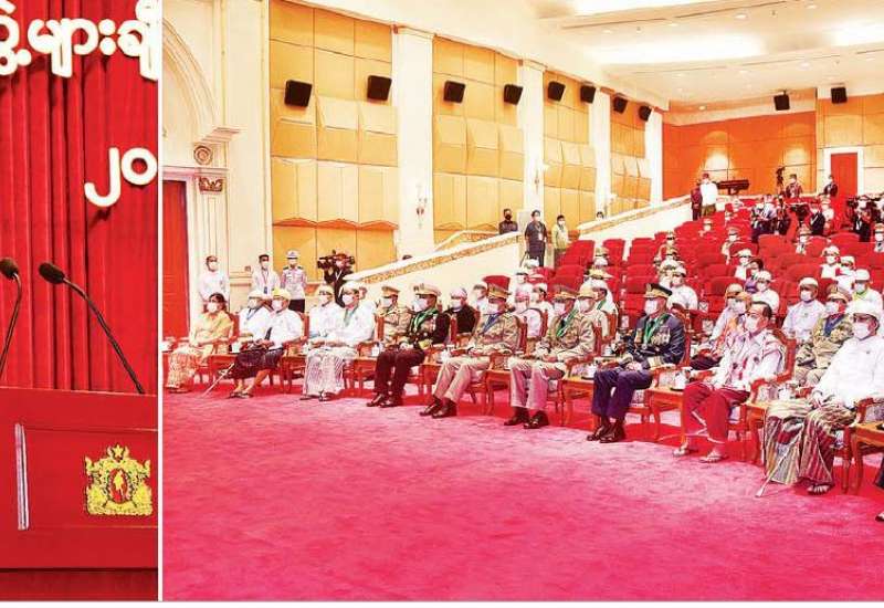 တပ်မတော်စွမ်းရည်သတ္တိနှင့် စွမ်းဆောင်မှုဆိုင်ရာဂုဏ်ထူးဆောင်တံဆိပ်နှင့် လက်မှတ်များ ချီးမြှင့်အပ်နှင်းခြင်း အခမ်းအနားကို ယနေ့မွန်းလွဲပိုင်းတွင် နေပြည်တော်ရှိ ဇေယျာသီရိ ဗိမာန်၌ ကျင်းပပြုလုပ်ရာ နိုင်ငံတော် စီမံအုပ်ချုပ်ရေးကောင်စီဥက္ကဋ္ဌ၊ တပ်မတော် ကာကွယ်ရေးဦးစီးချုပ် ဗိုလ်ချုပ်မှူးကြီး မဟာသရေစည်သူ မင်းအောင်လှိုင် တက်ရောက်မိန့်ခွန်း ပြောကြားပြီး ဂုဏ်ထူးဆောင်တံဆိပ်နှင့် လက်မှတ်များကို ချီးမြှင့်အပ်နှင်းပေးသည်။