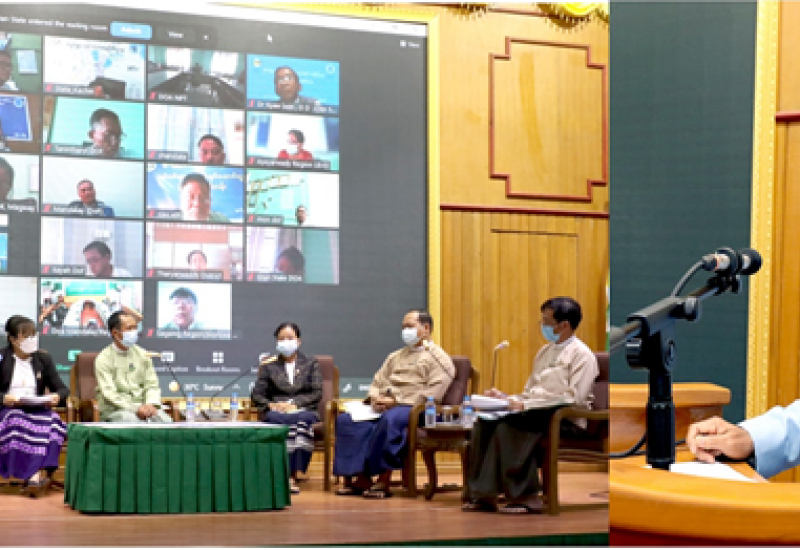 ရင်းနှီးမြှုပ်နှံသူများအတွက် အွန်လိုင်းမှ တွေ့ဆုံဆွေးနွေးမည့်အစီအစဉ် (DICA Online Solution - DOSo)ကို အောင်မြင်စွာ အကောင် အထည်ဖော်ဆောင်ရွက်နိုင်ရေးအတွက် သက်ဆိုင်ရာ ဝန်ကြီးဌာနများနှင့် လုပ်ငန်းညှိနှိုင်းအစည်းအဝေးကို ယနေ့နံနက်ပိုင်းတွင် ရင်းနှီးမြှုပ်နှံ မှုနှင့်နိုင်ငံခြားစီးပွားဆက်သွယ်ရေးဝန်ကြီးဌာန ရုံးအမှတ် (၁) ၌ ကျင်းပသည်။