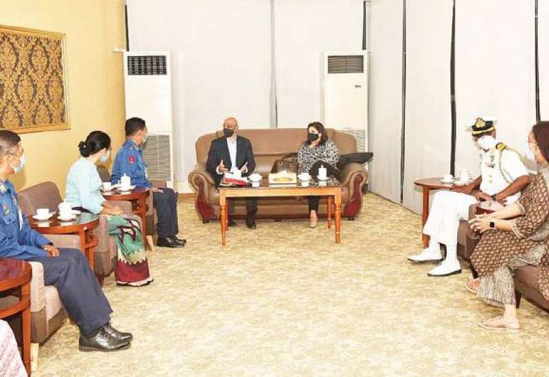 မြန်မာနိုင်ငံတွင် ကျင်းပပြုလုပ်မည့် ပထမအကြိမ် ရေကြောင်း တိုင်းတာရေးဆိုင်ရာ ပူးတွဲကော်မတီ အစည်းအဝေး (1st Joint Committee MeetingJCM) သို့ တက်ရောက်ရန် အတွက် အိန္ဒိယရေတပ်မှ ရေကြောင်း တိုင်းတာရေးဆိုင်ရာ အကြီးအကဲ Goap Vice Admiral Adhir Arora နှင့်ဇနီး ဦးဆောင်သော ကိုယ်စား လှယ်အဖွဲ့သည် ယနေ့ညပိုင်းတွင် လေကြောင်းခရီးဖြင့် ရန်ကုန်မြို့သို့ ရောက်ရှိလာရာ တပ်မတော် (ရေ)မှ အရာရှိကြီးများ၊ မြန်မာ နိုင်ငံဆိုင်ရာ အိန္ဒိယရေတပ် စစ်သံမှူးနှင့် တာဝန်ရှိသူများက ရန်ကုန် အပြည်ပြည်ဆိုင်ရာ လေဆိပ်တွင် ကြိုဆိုနှုတ်ဆက်ကြသည်။