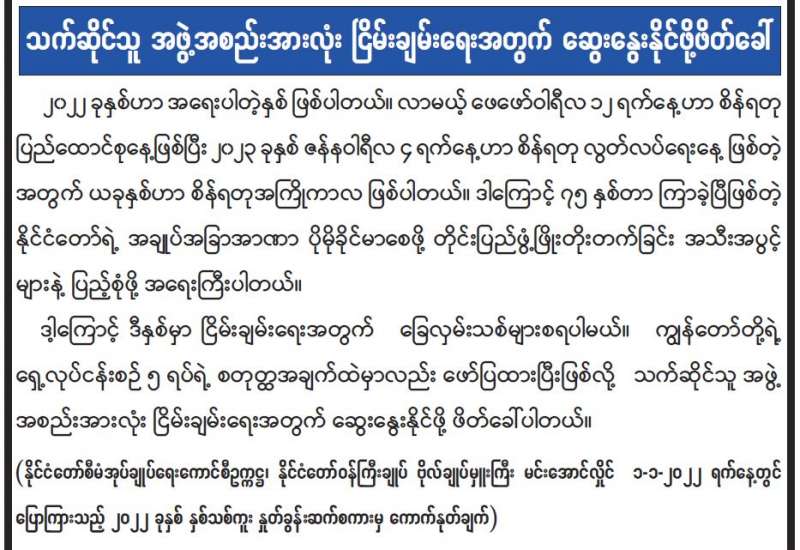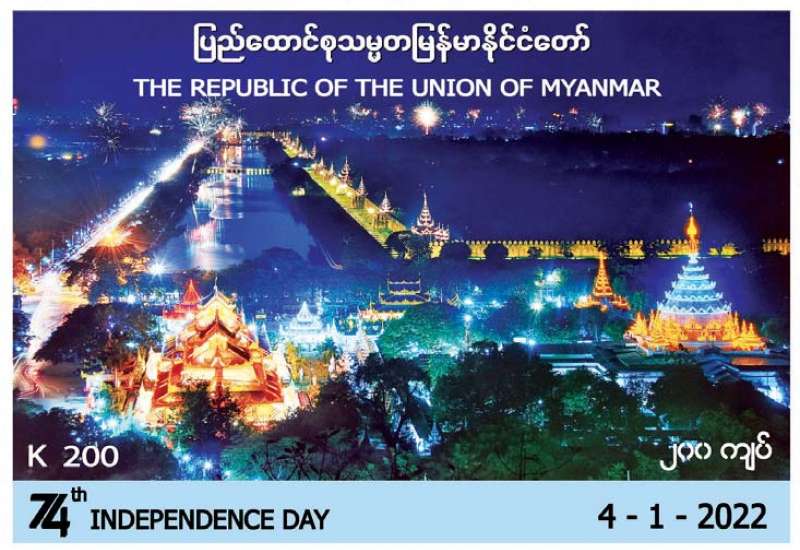 ပို့ဆောင်ရေးနှင့် ဆက်သွယ်ရေး ဝန်ကြီးဌာန မြန်မာ့စာတိုက် လုပ်ငန်းက (၇၄) နှစ်မြောက် လွတ်လပ်ရေးနေ့ အထိမ်းအမှတ် အထူးထုတ် (၂၀၀ ကျပ်တန်) စာပို့ တံဆိပ်ခေါင်းသစ် သုံးမျိုးကို ၂၀၂၂ ခုနှစ် ဇန်နဝါရီ ၄ ရက်၊ မြန်မာသက္ကရာဇ် ၁၃၈၃ ခုနှစ် ပြာသိုလဆန်း ၃ ရက်(အင်္ဂါနေ့) နံနက် ၉ နာရီခွဲမှစတင်၍ နေပြည်တော် ဗဟိုစာတိုက်ကြီး၊ ရန်ကုန် စာတိုက်ကြီး၊ မန္တလေးစာတိုက်ကြီးတို့နှင့် တိုင်းဒေသကြီး/ပြည်နယ်များရှိ စာတိုက်များတွင် ရောင်းချပေးသွားမည် ဖြစ်သည်။ အထူးအစီအစဉ် တစ်ရပ်အနေဖြင့် နေပြည်တော် ဗဟိုစာတိုက်ကြီး၊ ရန်ကုန်စာတိုက်ကြီးနှင့် မန္တလေး စာတိုက်ကြီး တို့တွင် ဇန်နဝါရီ ၄ ရက်တွင် ဝယ်ယူသော စာပို့တံဆိပ်ခေါင်းများပေါ်တွင် နေ့စွဲအမှတ် အသား တံဆိပ်ရိုက်နှိပ်ပေး မည်ဖြစ်ကြောင်း သိရသည်။