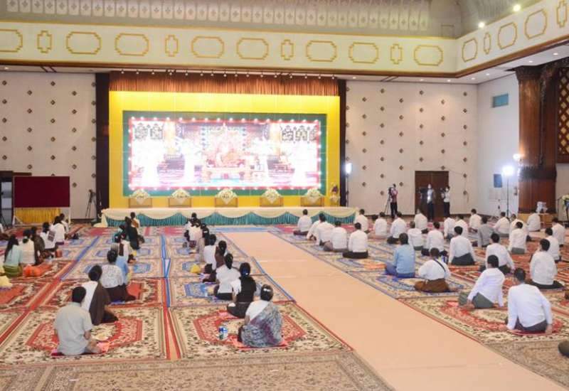 ရန်ကုန်တိုင်းဒေသကြီးအစိုးရအဖွဲ့မှ ကြီးမှူးကျင်းပသော နှစ်ဦးတရားအလှူ တော်ဓမ္မပူဇာ ပထမနေ့တရားပွဲကို ဇန်နဝါရီ ၁ ရက် ညပိုင်းတွင် တိုင်းဒေသကြီးအစိုးရ အဖွဲ့ရုံး၊ မင်္ဂလာခန်းမ၌ ပြုလုပ်သည်။