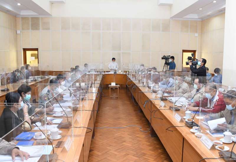 တက္ကသိုလ်များ ဖွင့်လှစ်ရေးလုပ်ငန်းညှိနှိုင်းအစည်းအဝေးကို ယနေ့နံနက် ၉ နာရီခွဲ တွင် နေပြည်တော်ရှိ ပညာရေးဝန်ကြီးဌာန ရုံးအမှတ်(၁၃) အစည်းအဝေးခန်းမ၌ ကျင်းပသည်။