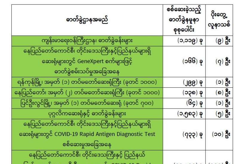 ကျန်းမာရေးဝန်ကြီးဌာနအနေဖြင့် နိုင်ငံအတွင်း ကူးစက်ဖြစ်ပွားနေသော COVID-19 ရောဂါ ကာကွယ်၊ ကုသ၊ ထိန်းချုပ်ရေးလုပ်ငန်းများကို အရှိန်အဟုန်မြှင့်ဆောင်ရွက်လျက်ရှိရာ ရောဂါ ထိန်းချုပ်ရေးလုပ်ငန်းများ အောင်မြင်နိုင်ရေးအတွက် ပြည်သူလူထုအနေဖြင့် ကျန်းမာရေးဝန်ကြီး ဌာနမှထုတ်ပြန်ထားသော COVID-19 ရောဂါကာကွယ်ထိန်းချုပ်ရေးဆိုင်ရာစည်းကမ်းများကို စနစ် တကျ လိုက်နာဆောင်ရွက်ရန်လိုအပ်ပြီး COVID-19 ကာကွယ်ဆေးထိုးနှံမှုခံယူခြင်းအား အထူး ဂရုပြု ပူးပေါင်းဆောင်ရွက်ကြရန် လိုအပ်ပါသည်။