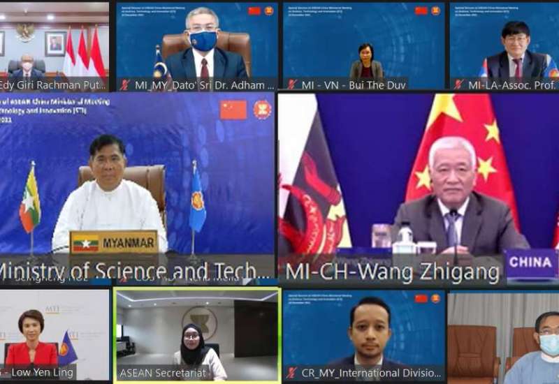 အာဆီယံ-တရုတ် သိပ္ပံ၊ နည်းပညာနှင့် တီထွင်ဆန်းသစ်မှုဆိုင်ရာ ဝန်ကြီးအဆင့် အထူးအစည်းအဝေးကို ယနေ့တွင် ထိုင်းနိုင်ငံက ဗီဒီယိုကွန်ဖရင့်စနစ်ဖြင့် အိမ်ရှင်အဖြစ် လက်ခံကျင်းပရာ သိပ္ပံနှင့်နည်းပညာဝန်ကြီးဌာန ပြည်ထောင်စုဝန်ကြီး ဒေါက်တာမျိုးသိန်းကျော် တက်ရောက်သည်။