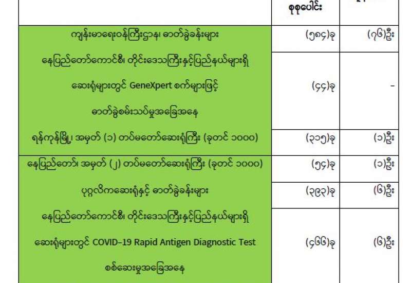 ကျန်းမာရေးဝန်ကြီးဌာနအနေဖြင့် နိုင်ငံအတွင်း ကူးစက်ဖြစ်ပွားနေသော COVID-19 ရောဂါ ကာကွယ်၊ ကုသ၊ ထိန်းချုပ်ရေးလုပ်ငန်းများကို အရှိန်အဟုန်မြှင့်ဆောင်ရွက်လျက်ရှိရာ ရောဂါ ထိန်းချုပ်ရေးလုပ်ငန်းများ အောင်မြင်နိုင်ရေးအတွက် ပြည်သူလူထုအနေဖြင့် ကျန်းမာရေး ဝန်ကြီး ဌာနမှထုတ်ပြန်ထားသော COVID-19 ရောဂါကာကွယ်ထိန်းချုပ်ရေးဆိုင်ရာ စည်းကမ်းများကို စနစ်တကျ လိုက်နာဆောင်ရွက်ရန် လိုအပ်ပြီး COVID-19 ကာကွယ်ဆေးထိုးနှံမှု ခံယူခြင်းအား အထူးဂရုပြု ပူးပေါင်းဆောင်ရွက်ကြရန် လိုအပ်ပါသည်။