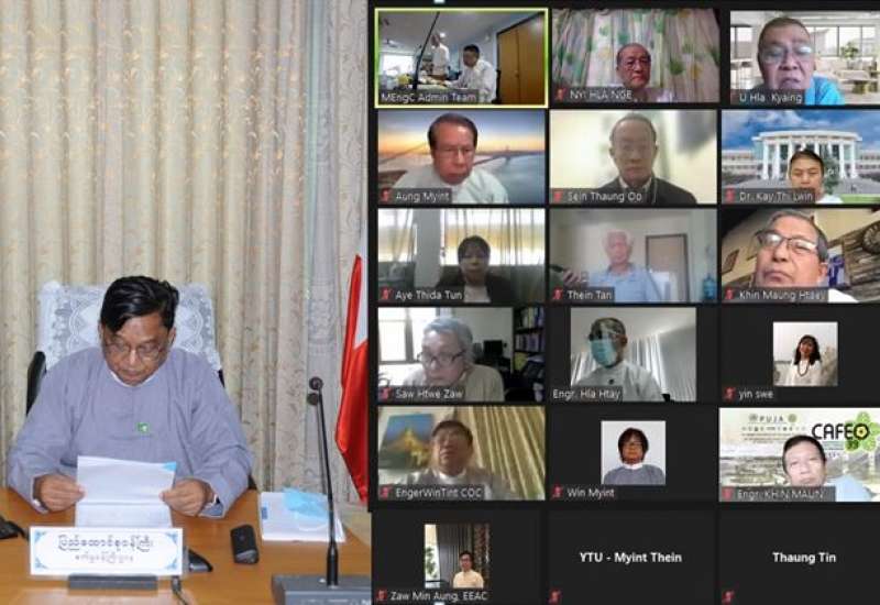ဒုတိယအကြိမ် မြန်မာနိုင်ငံအင်ဂျင်နီယာကောင်စီ၏ ဒုတိယ(၆)လပတ် ကောင်စီ ညှိနှိုင်းအစည်းအဝေးကို ယနေ့နံနက်ပိုင်း က Virtual စနစ်ဖြင့်ကျင်းပရာ မြန်မာနိုင်ငံ အင်ဂျင်နီယာကောင်စီနာယက၊ စက်မှုဝန်ကြီးဌာန ပြည်ထောင်စုဝန်ကြီး ဒေါက်တာချာလီသန်း သည် နေပြည်တော်ရှိ စက်မှုဝန်ကြီးဌာနမှ ပါဝင်တက်ရောက်သည်။