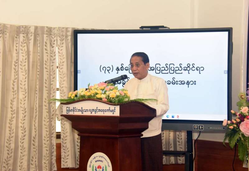 (၇၃)နှစ်မြောက် အပြည်ပြည်ဆိုင်ရာဆိုင်ရာ လူ့အခွင့်အရေးနေ့ အခမ်းအနားကို ယနေ့နံနက် ၁၀ နာရီတွင် ရန်ကုန်တိုင်းဒေသကြီး လှိုင်မြို့နယ် အမှတ်(၂၇)ပြည်လမ်းရှိ မြန်မာနိုင်ငံအမျိုးသား လူ့အခွင့်အရေးကော်မရှင်ရုံး (Conference Room) ၌ ကိုဗစ်-၁၉ ရောဂါ ကာကွယ်၊ ထိန်းချုပ်၊ ကုသရေးဆိုင်ရာ လမ်းညွှန်ချက်များ၊ စည်းမျဉ်းစည်းကမ်းများနှင့်အညီ ကျင်းပသည်။