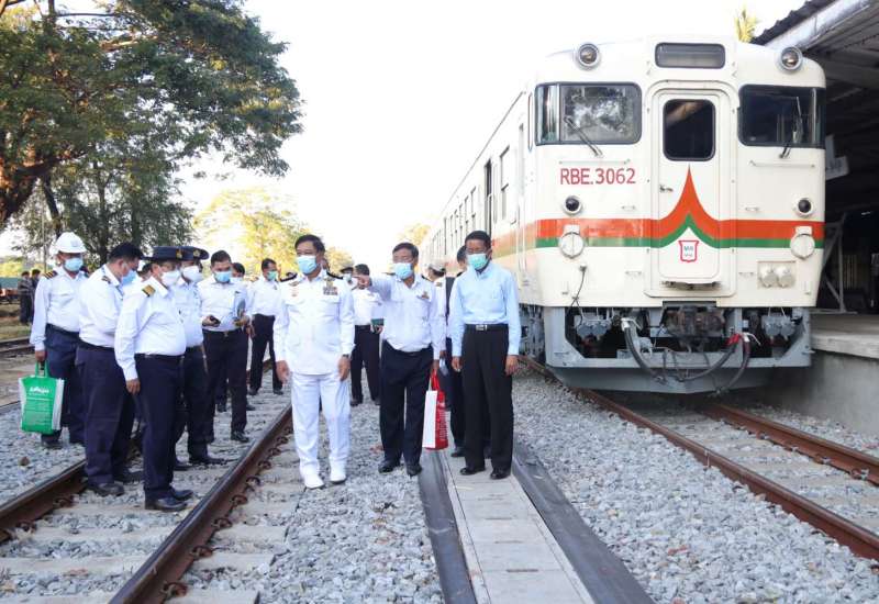 ပို့ဆောင်ရေးနှင့်ဆက်သွယ်ရေးဝန်ကြီးဌာန၊ ပြည်ထောင်စုဝန်ကြီး ဗိုလ်ချုပ်ကြီး တင်အောင်စန်း သည် ဒီဇင်ဘာ ၉ ရက်တွင် ရန်ကုန်-မန္တလေး ရထားလမ်းပိုင်းအဆင့် မြှင့်တင်ရေးစီမံကိန်း အဆင့် (၁)ဖြစ်သည့် ရန်ကုန်-တောင်ငူရထားလမ်းပိုင်း အဆင့်မြှင့်တင်ရေးစီမံကိန်း (ပြွန်တန်ဆာစီမံကိန်းရုံး)၊ စီမံကိန်းရထား လမ်းပိုင်းပြီးစီးမှု၊ တံတားတည်ဆောက်မှုနှင့် ပျဉ်ပုံကြီးဘူတာ မွမ်းမံပြင်ဆင်မှု လုပ်ငန်းခွင်များကို ကြည့်ရှု့စစ်ဆေးသည်။