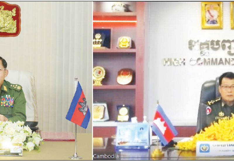 နိုင်ငံတော်စီမံအုပ်ချုပ်ရေးကောင်စီဥက္ကဋ္ဌ၊ တပ်မတော်ကာကွယ်ရေးဦးစီးချုပ် ဗိုလ်ချုပ်မှူးကြီး မင်းအောင်လှိုင်သည် ကမ္ဘောဒီးယားဘုရင့် တပ်မတော်ကာကွယ်ရေး ဦးစီးချုပ် General VONG PISEN နှင့်ယနေ့ညနေပိုင်းတွင် Video Conferen ဖြင့် တွေ့ဆုံဆွေးနွေးသည်။