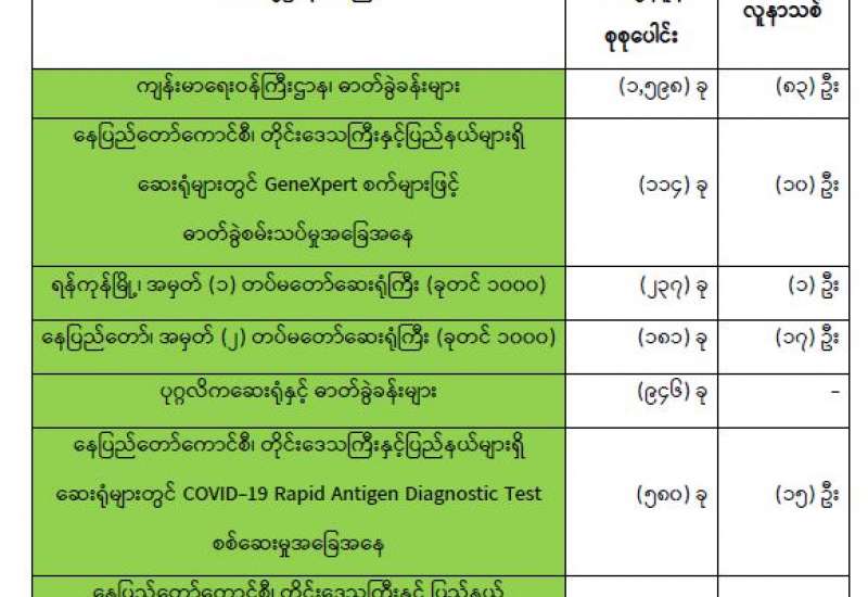 ကျန်းမာရေးဝန်ကြီးဌာနအနေဖြင့် နိုင်ငံအတွင်း ကူးစက်ဖြစ်ပွားနေသော COVID-19 ရောဂါ ကာကွယ်၊ ကုသ၊ ထိန်းချုပ်ရေးလုပ်ငန်းများကို အရှိန်အဟုန်မြှင့် ဆောင်ရွက်လျက်ရှိပါသည်။