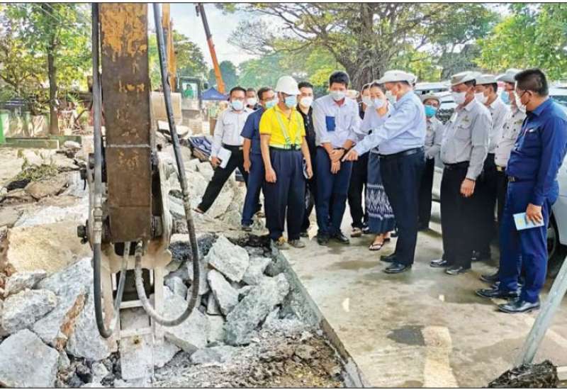 ဆောက်လုပ်ရေးဝန်ကြီးဌာန ပြည်ထောင်စုဝန်ကြီး ဦးရွှေလေးသည် နိုဝင်ဘာ ၂၈ ရက်တွင် ရန်ကုန်တိုင်း ဒေသကြီး ကျေးလက်လမ်းဖွံ့ဖြိုးရေး ဦးစီးဌာနမှ ဆောင်ရွက်သော တိုက်ကြီးမြို့နယ်အတွင်း အရှည် နှစ်မိုင် တာဂ္ဂ - ဂုံညင်းတန်း - ရှောက်ပင်ကပ် - ကုလားစု - ဗမာစု လမ်းကွန်ကရစ်ခင်းပြီးစီးမှုကို ကြည့်ရှုစစ်ဆေးသည်။