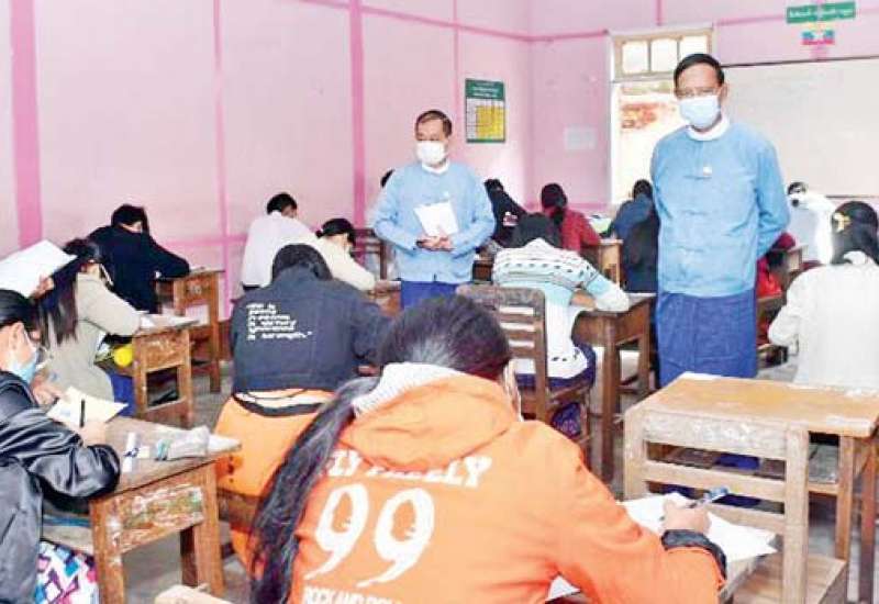ပြည်ထောင်စု ရာထူးဝန်အဖွဲ့၏ ကြော်ငြာစာအမှတ် ၂/၂၀၂၀ နှင့် ၅/၂၀၂၁ ပါ နိုင်ငံခြားရေးဝန်ကြီး ဌာန၊ စီမံကိန်းနှင့်စီမံရေးရာဦးစီး ဌာန၊ ဌာနစုမှူး(၂)/တတိယ အတွင်းဝန် (အမျိုးသား၊ အမျိုး သမီး) ရာထူး ၃၅ နေရာအတွက် ပြန်တမ်းဝင်အဆင့် စတင်ခန့် အရာထမ်းရာထူးများ ရွေးချယ် ပေးရန် ရေးဖြေစာမေးပွဲကို ကိုဗစ်-၁၉ကာကွယ်ထိန်းချုပ်ရေး ဆိုင်ရာ စည်းကမ်းသတ်မှတ်ချက် နှင့်အညီ နေပြည်တော်၊ ရန်ကုန်၊ မန္တလေး၊ မကွေးနှင့် မော်လမြိုင်မြို့ တို့ရှိ စာစစ်ဌာနငါးခု၌ နိုဝင်ဘာ ၂၇ ရက်နှင့် ၂၈ရက်တို့တွင် တစ်ပြိုင် တည်း ကျင်းပလျက်ရှိသည်။
